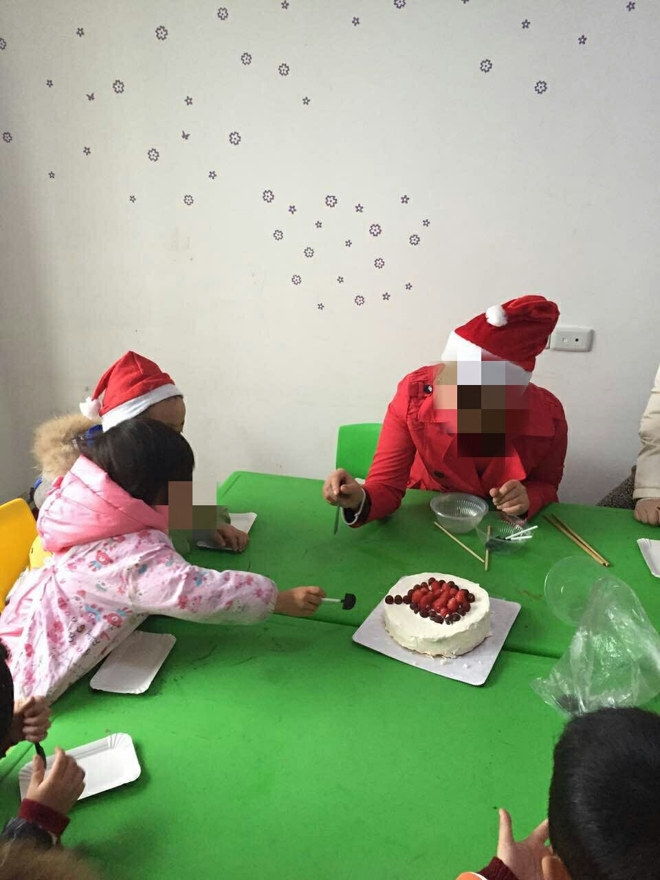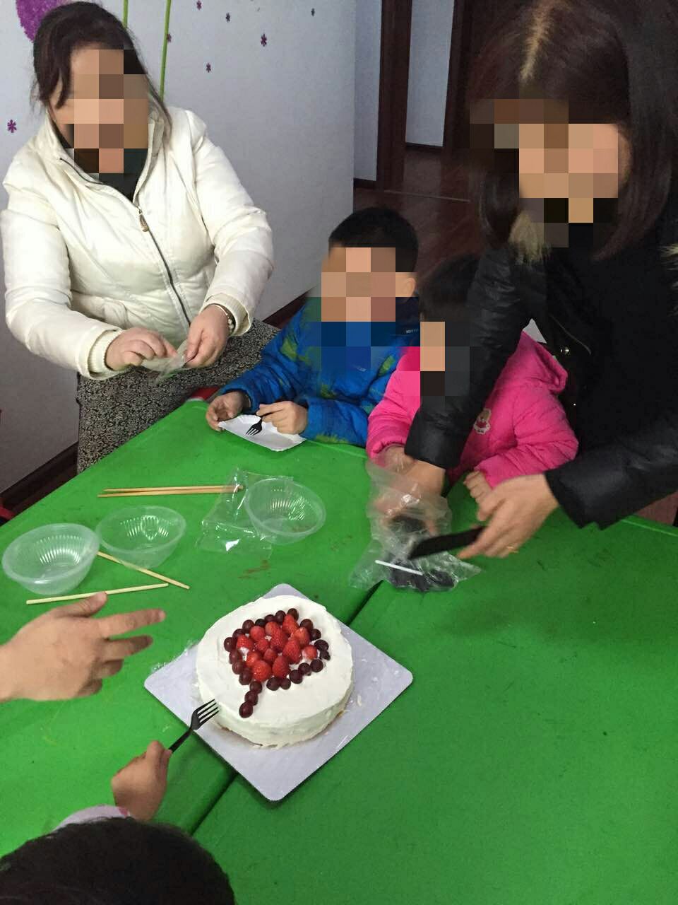 在 活动接近尾声时,睿睿妈妈自己制作了一个水果蛋糕,带来分享给大家,孩子们都迫不及待的想要吃蛋糕了........