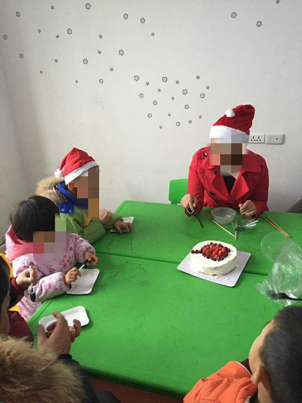 老师和孩子们,一起感谢睿睿妈妈的蛋糕,然后开始分蛋糕喽!