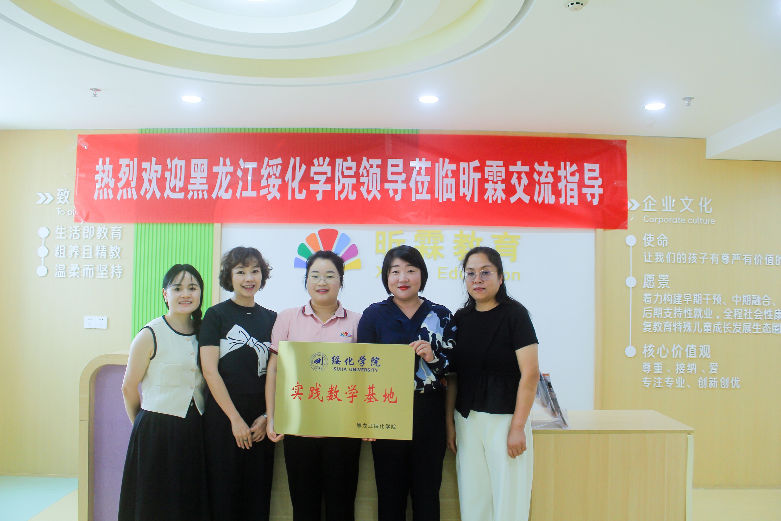 8月11日,黑龙江绥化学院领导一行到昕霖特教进行实地参观交流,双方就深化校企合作、共建实习基地、特教专业培养方案改进等事宜展开深入探讨。
